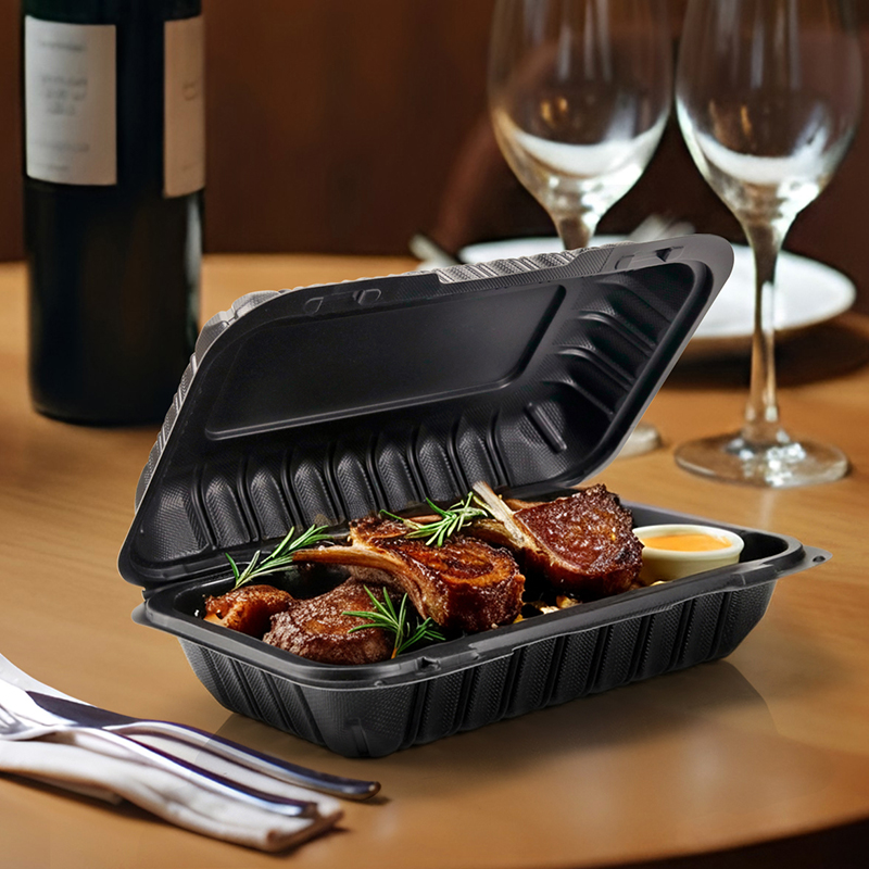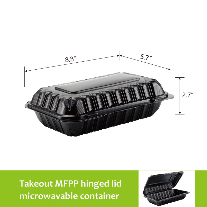 27oz.Mineral Filled PP Hinged Container 8.8x5.7x2.7inches-150/case 206S Size :8.8x5.7x2.7inches Length: 8.8inches Width :5.7inches Height: 2.7inches Capacity :27oz(750ml) Weight:40g Color: Black Number of Compartments: One Compartment Shape :Rectangle Quantity :150/case Microwavable: Yes Material :Polypropylene Stackable: Yes Style :Hinged Type: Containers